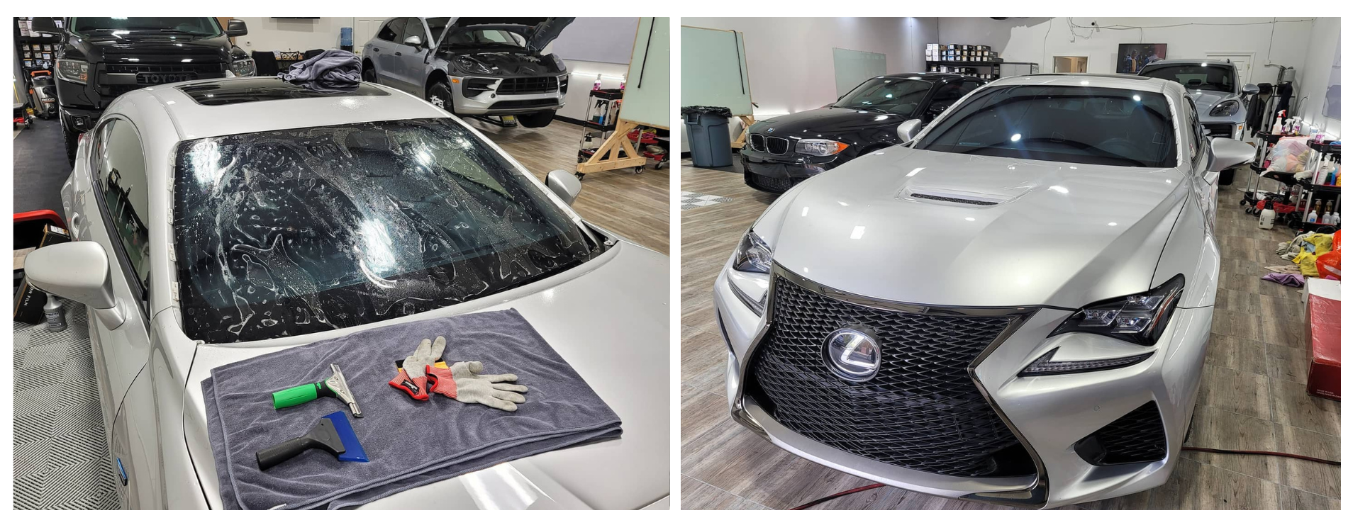 We begin by thoroughly cleaning and preparing your glass to ensure a perfect bond. Every step is performed indoors to eliminate dust and ensure flawless results.